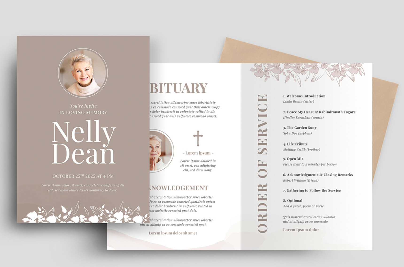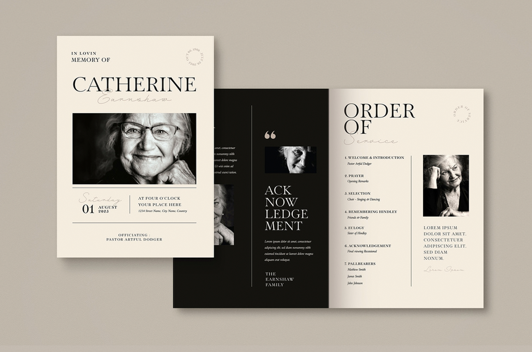 Our order of service booklet and memory photo board is a celebration of life and as individual as the person it commemorates.